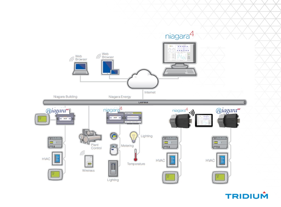 Niagara is a proven, cost effective solution. A software platform designed from the ground up to be both vendor and protocol neutral. A software solution that will make all of your systems into a unified, easy to navigate web site. With full access to real time data and alarms.